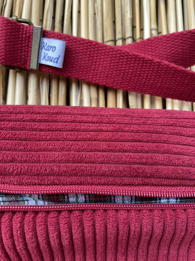 Vous disposez d'un bandoulière réglable, que j'ai réalisé à l'aide de sangle en coton.